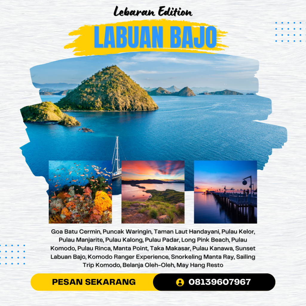 Goa Batu Cermin, Puncak Waringin, Taman Laut Handayani, Pulau Kelor, Pulau Manjarite, Pulau Kalong, Pulau Padar, Long Pink Beach, Pulau Komodo, Pulau Rinca, Manta Point, Taka Makasar, Pulau Kanawa, Sunset Labuan Bajo, Komodo Ranger Experience, Snorkeling Manta Ray, Sailing Trip Komodo, Belanja Oleh-Oleh, May Hang Resto
